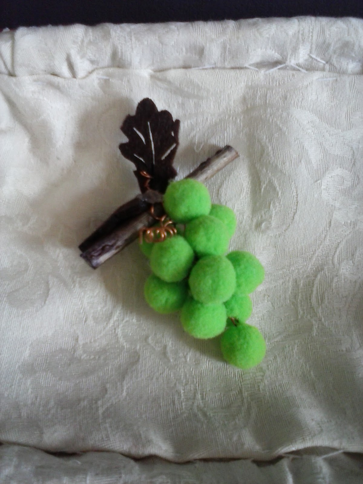 RispondiEliminaCiao Paola, l'uva l'ho realizzata con palline di feltro già fatte, le ho comprate così e poi unite con filo di ferro, legnetti e foglie in feltro verde, disegnate e realizzate da me!Grazie!